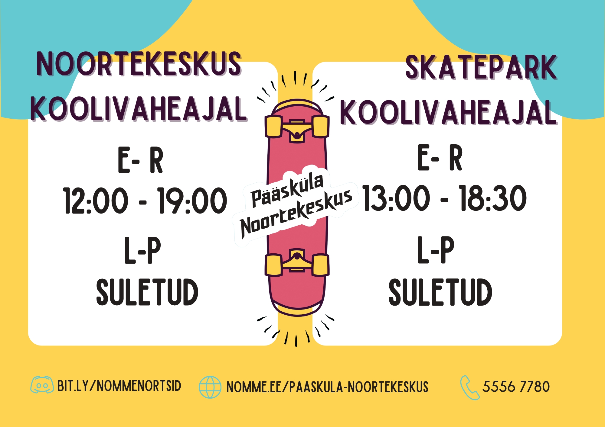Nõmme Vaba Aja Keskus → Pääsküla noortekeskus → Teated → Aprilli koolivaheaja lahtioleku ajad