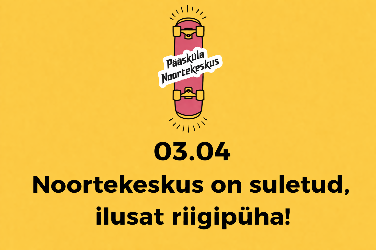 03.04 Pääsküla noortekeskus on suletud! Ilusat riigipüha!