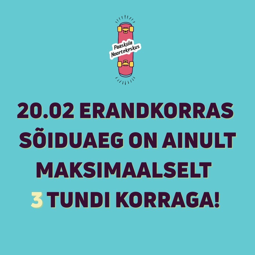 Homme kehtib erandkorras 3 tunni sõidu reegel. See tähendab, et sõita on lubatud maksimaalselt 3 tundi korraga.